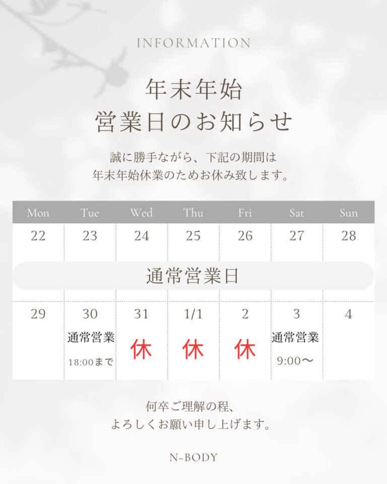『N-BODY』が5周年を迎えることが出来ました! これもひとえに皆様の温かいご支援とご愛顧の賜物と 心より感謝申し上げます。 これからも皆様に喜んで頂けるお店 […] -